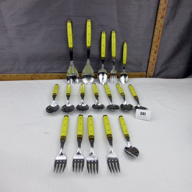 Current Bid: $23.00 [Refresh Price]YOU WILL NEED TO REFRESH THIS PAGE TO SEE UPDATED BID (Log in and this will update automatically) You must LOG IN or REGISTER to see this full page auction listing and bid. Auction is Over Winning Bid Amount: $23.00 **Lot Details: (241o) - 17 pieces of Melron made in France cutlery with bakelite handles Log in to add this lot to your watch list or place a bid |