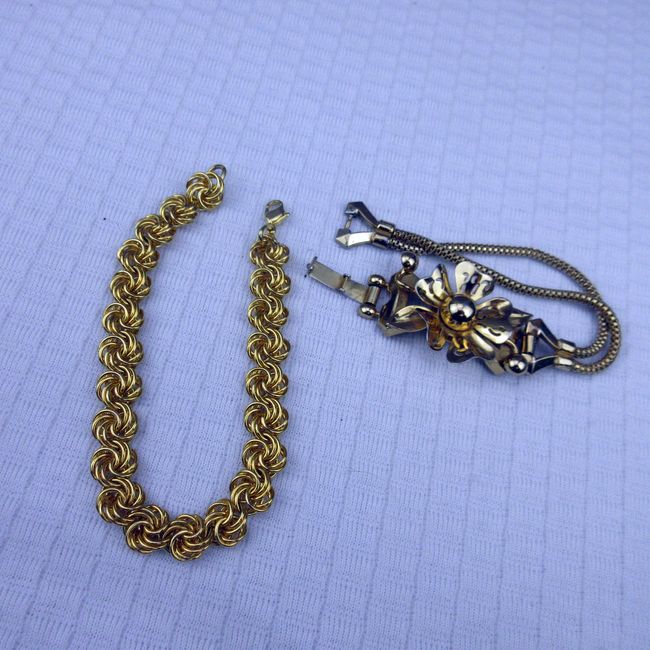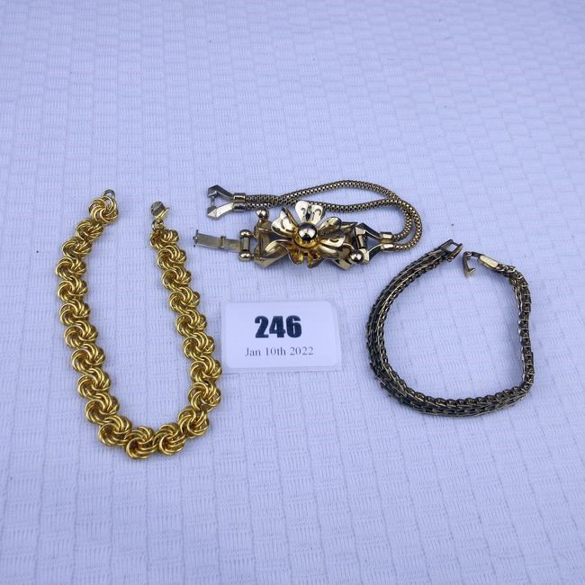 Current Bid: $13.00 [Refresh Price]YOU WILL NEED TO REFRESH THIS PAGE TO SEE UPDATED BID (Log in and this will update automatically) You must LOG IN or REGISTER to see this full page auction listing and bid. Auction is Over Winning Bid Amount: $13.00 **Lot Details: (246o) - 3 gold plated bracelets, flower one is Coro Log in to add this lot to your watch list or place a bid |
