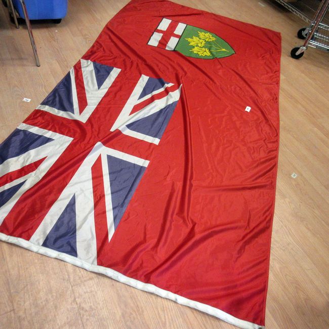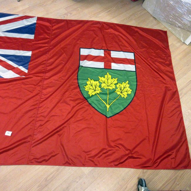 Current Bid: $30.90 [Refresh Price]YOU WILL NEED TO REFRESH THIS PAGE TO SEE UPDATED BID (Log in and this will update automatically) You must LOG IN or REGISTER to see this full page auction listing and bid. Auction is Over Winning Bid Amount: $30.90 **Lot Details: (263o) - Huge Ontario flag 108"L x 54"H, in good condition. Ready to fly or hang Log in to add this lot to your watch list or place a bid |