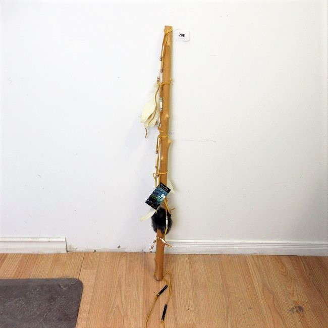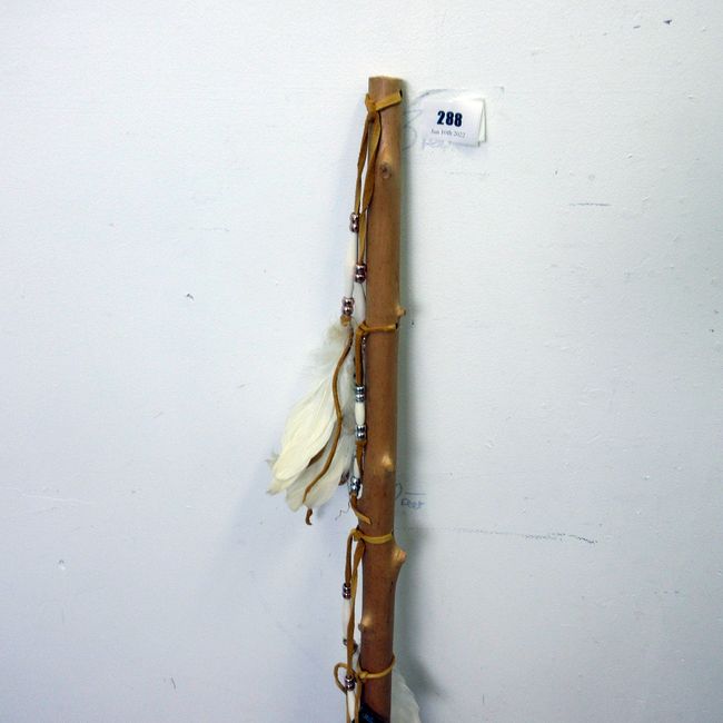 Current Bid: $24.00 [Refresh Price]YOU WILL NEED TO REFRESH THIS PAGE TO SEE UPDATED BID (Log in and this will update automatically) You must LOG IN or REGISTER to see this full page auction listing and bid. Auction is Over Winning Bid Amount: $24.00 **Lot Details: (288o) - Handmade Cedar dancing stick 37"L x 1 1/4"W. Beautifully embellished with Deer hide, beads, fur/feathers Log in to add this lot to your watch list or place a bid |