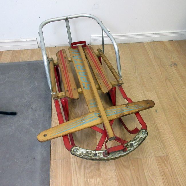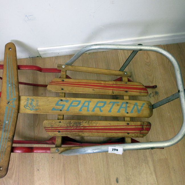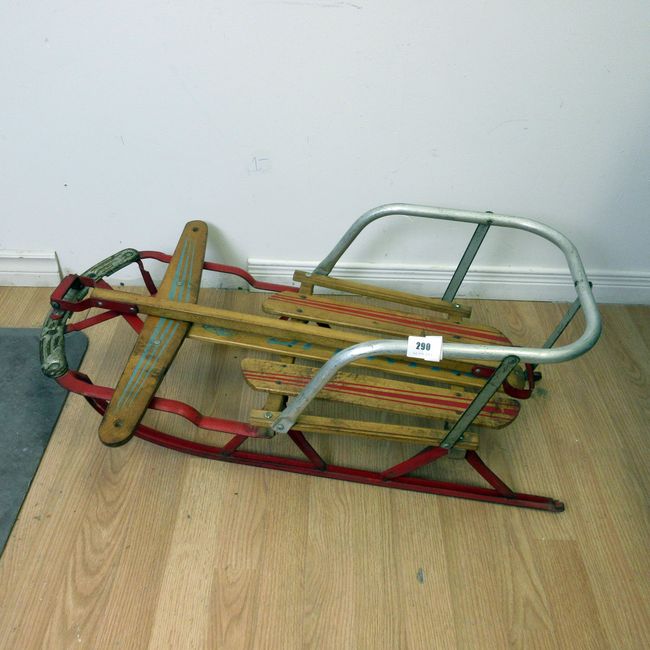 Current Bid: $52.00 [Refresh Price]YOU WILL NEED TO REFRESH THIS PAGE TO SEE UPDATED BID (Log in and this will update automatically) You must LOG IN or REGISTER to see this full page auction listing and bid. Auction is Over Winning Bid Amount: $52.00 **Lot Details: (290o) - Vintage Werlich Spartan child's sleigh. Wood and metal, Canadian. Good condition with handle. 32"L x 21"W x 14"H Log in to add this lot to your watch list or place a bid |