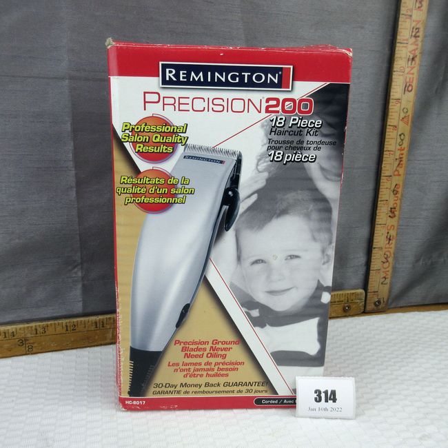 Current Bid: $9.00 [Refresh Price]YOU WILL NEED TO REFRESH THIS PAGE TO SEE UPDATED BID (Log in and this will update automatically) You must LOG IN or REGISTER to see this full page auction listing and bid. Auction is Over Winning Bid Amount: $9.00 **Lot Details: (314o) - Remington Precision 200, 18 piece haircut kit, new in case Log in to add this lot to your watch list or place a bid |