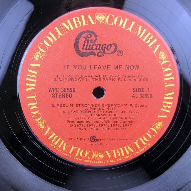 Current Bid: $11.33 [Refresh Price]YOU WILL NEED TO REFRESH THIS PAGE TO SEE UPDATED BID (Log in and this will update automatically) You must LOG IN or REGISTER to see this full page auction listing and bid. Auction is Over Winning Bid Amount: $11.33 **Lot Details: (365o) - Chicago, If You Leave Me Now, in good, playable condition. From a record store Log in to add this lot to your watch list or place a bid |