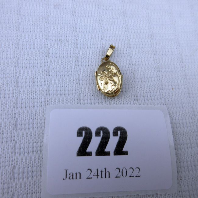 Current Bid: $75.01 [Refresh Price]YOU WILL NEED TO REFRESH THIS PAGE TO SEE UPDATED BID (Log in and this will update automatically) You must LOG IN or REGISTER to see this full page auction listing and bid. Auction is Over Winning Bid Amount: $75.01 **Lot Details: (222q) - 10K Gold Germany marked Locket w original inserts which appear glass, consignor did not remove to inspect this Log in to add this lot to your watch list or place a bid |