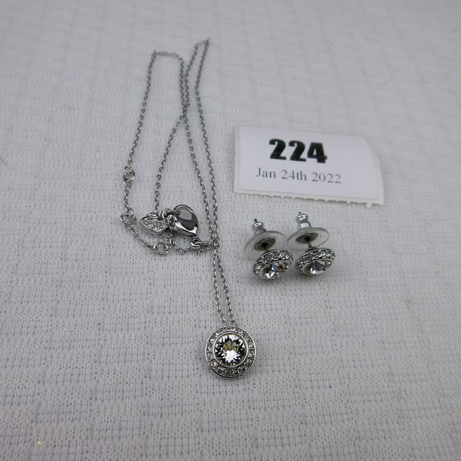 Current Bid: $35.00 [Refresh Price]YOU WILL NEED TO REFRESH THIS PAGE TO SEE UPDATED BID (Log in and this will update automatically) You must LOG IN or REGISTER to see this full page auction listing and bid. Auction is Over Winning Bid Amount: $35.00 **Lot Details: (224q) - Stunning Swarovski "Angelic" Set out of stock, Necklace and Earrings w Swaroski push backs on 18" Swarovski Chain w Heart hang tag and 4 length adjustable hook holes for length Log in to add this lot to your watch list or place a bid |