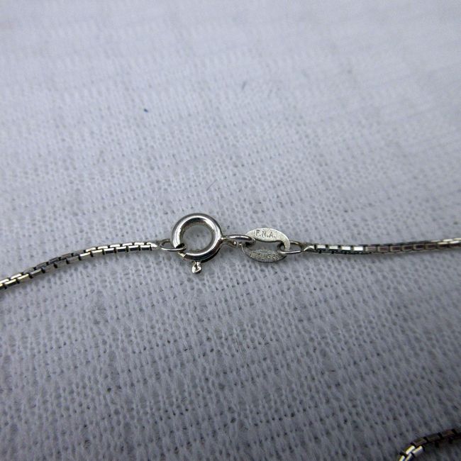 Current Bid: $20.00 [Refresh Price]YOU WILL NEED TO REFRESH THIS PAGE TO SEE UPDATED BID (Log in and this will update automatically) You must LOG IN or REGISTER to see this full page auction listing and bid. Auction is Over Winning Bid Amount: $20.00 **Lot Details: (236q) - Elle signed Sterling Silver single Solitaire Pendant which can be worn in reverse, signed Elle with her Red stone trademark on rear of Pendant and on Sterling Box Chain 18 1/2" Log in to add this lot to your watch list or place a bid |
