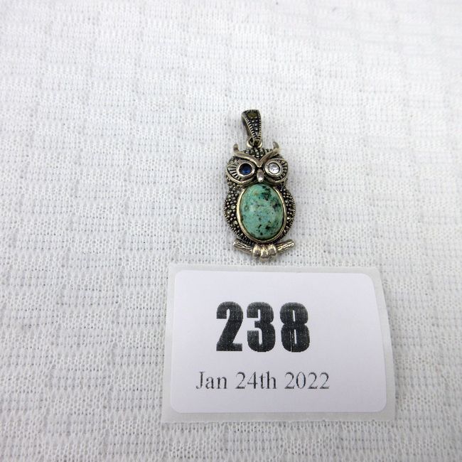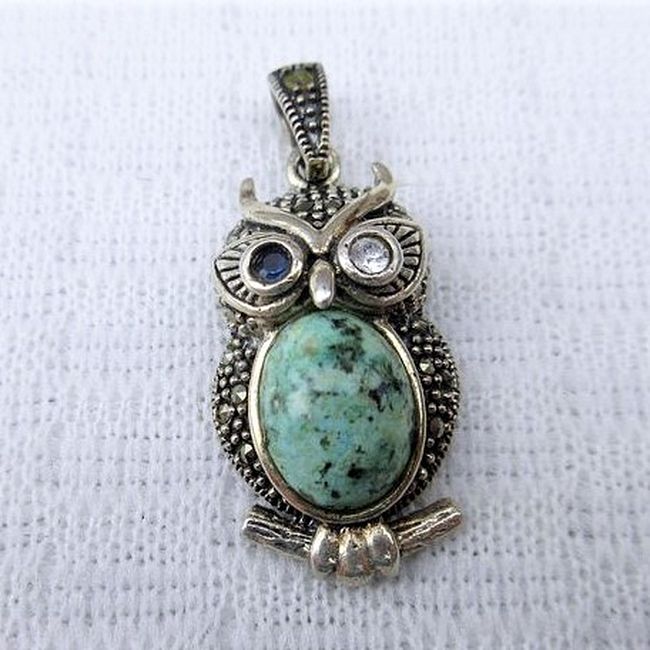 Current Bid: $20.00 [Refresh Price]YOU WILL NEED TO REFRESH THIS PAGE TO SEE UPDATED BID (Log in and this will update automatically) You must LOG IN or REGISTER to see this full page auction listing and bid. Auction is Over Winning Bid Amount: $20.00 **Lot Details: (238q) - Turquoise Sterling Silver OWL Marcasite Pendant Log in to add this lot to your watch list or place a bid |
