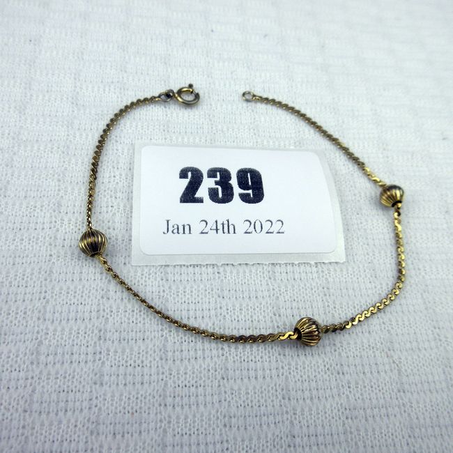 Current Bid: $[Refresh Price]YOU WILL NEED TO REFRESH THIS PAGE TO SEE UPDATED BID (Log in and this will update automatically) You must LOG IN or REGISTER to see this full page auction listing and bid. Auction is Over Winning Bid Amount: $This item did not sell **Lot Details: (239q) - Really nice Gold Filled 3 Ball Bracelet Log in to add this lot to your watch list or place a bid |