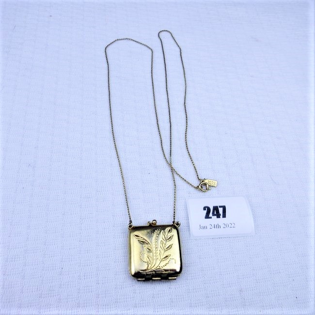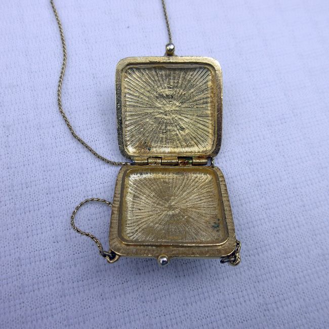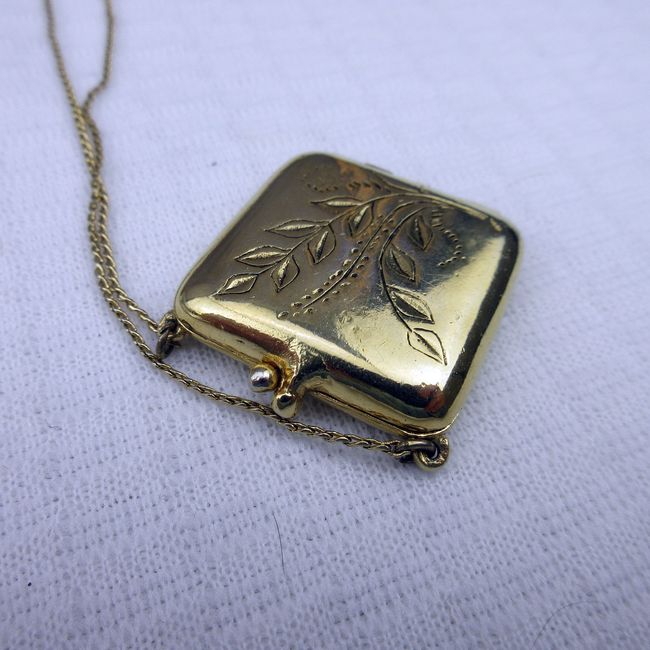 Current Bid: $27.00 [Refresh Price]YOU WILL NEED TO REFRESH THIS PAGE TO SEE UPDATED BID (Log in and this will update automatically) You must LOG IN or REGISTER to see this full page auction listing and bid. Auction is Over Winning Bid Amount: $27.00 **Lot Details: (247q) - 1928 Rare Locket Purse Necklace on 14" long per side original chains double etched design engraved front and back on this stash handbag and it is quite heavy Log in to add this lot to your watch list or place a bid |