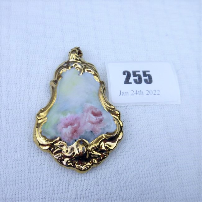 Current Bid: $23.00 [Refresh Price]YOU WILL NEED TO REFRESH THIS PAGE TO SEE UPDATED BID (Log in and this will update automatically) You must LOG IN or REGISTER to see this full page auction listing and bid. Auction is Over Winning Bid Amount: $23.00 **Lot Details: (255q) - Signed J Ford Porcelain 2 3/4" stunning hand painted? Pendant Log in to add this lot to your watch list or place a bid |