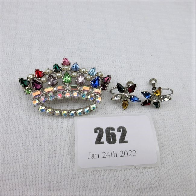 Current Bid: $24.00 [Refresh Price]YOU WILL NEED TO REFRESH THIS PAGE TO SEE UPDATED BID (Log in and this will update automatically) You must LOG IN or REGISTER to see this full page auction listing and bid. Auction is Over Winning Bid Amount: $24.00 **Lot Details: (262q) - 2 pcs Designer Signed B David Crown Brooch And B David Earrings both multicolor top end crystals all prong set Log in to add this lot to your watch list or place a bid |