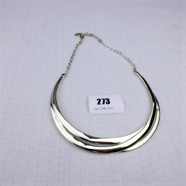 Current Bid: $5.00 [Refresh Price]YOU WILL NEED TO REFRESH THIS PAGE TO SEE UPDATED BID (Log in and this will update automatically) You must LOG IN or REGISTER to see this full page auction listing and bid. Auction is Over Winning Bid Amount: $5.00 **Lot Details: (273q) - Spectacular Joans of New York triple band Curved Necklace Log in to add this lot to your watch list or place a bid |