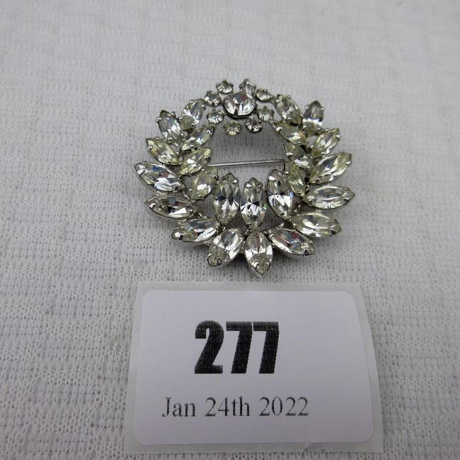 Current Bid: $37.05 [Refresh Price]YOU WILL NEED TO REFRESH THIS PAGE TO SEE UPDATED BID (Log in and this will update automatically) You must LOG IN or REGISTER to see this full page auction listing and bid. Auction is Over Winning Bid Amount: $37.05 **Lot Details: (277q) - BOOK PCS Stunning signed Sherman TIARA Brooch Swarovski Ice Crystals with the flower on top and the garland of leaves shown in All that Glitters by Gustave Sherman Log in to add this lot to your watch list or place a bid |