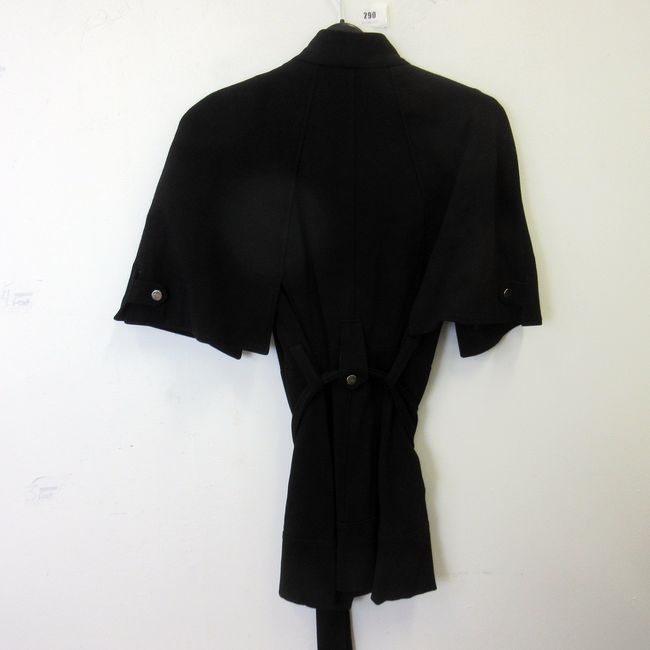 Current Bid: $19.00 [Refresh Price]YOU WILL NEED TO REFRESH THIS PAGE TO SEE UPDATED BID (Log in and this will update automatically) You must LOG IN or REGISTER to see this full page auction listing and bid. Auction is Over Winning Bid Amount: $19.00 **Lot Details: (290q) - Over the Top JOSEPH RIBKOFF designer RUNWAY heavy Zipper Cape Jacket Dress black size 10, Shoulders w Snaps for a different look Dress/Jacket, unzip cape sides to fold over or expose sleeveless shoulders, wear alone or with pants etc, absolutely Log in to add this lot to your watch list or place a bid |
