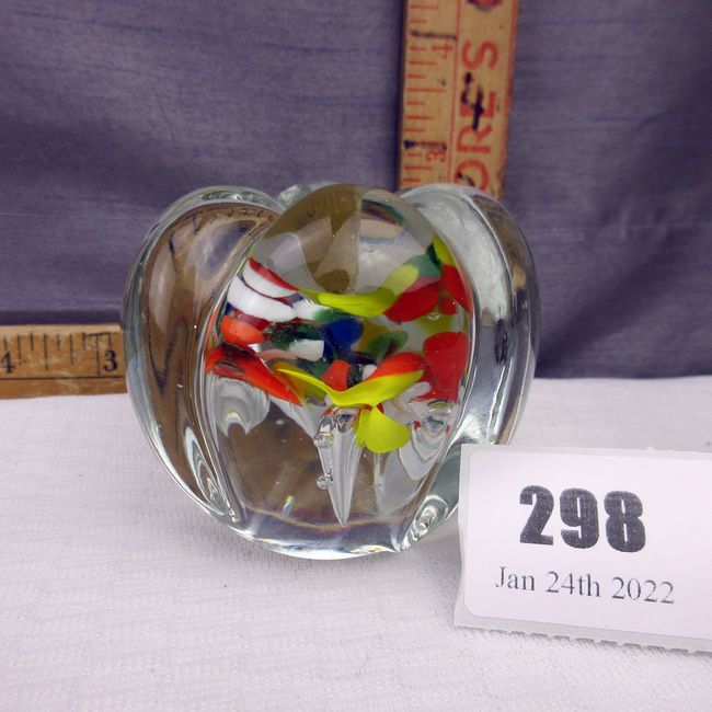 Current Bid: $10.25 [Refresh Price]YOU WILL NEED TO REFRESH THIS PAGE TO SEE UPDATED BID (Log in and this will update automatically) You must LOG IN or REGISTER to see this full page auction listing and bid. Auction is Over Winning Bid Amount: $10.25 **Lot Details: (298q) - Pumpkin shaped glass paperweight, small oval Butterfly wing miniature of Parrot in brass frame 3" x 2 1/4" Log in to add this lot to your watch list or place a bid |