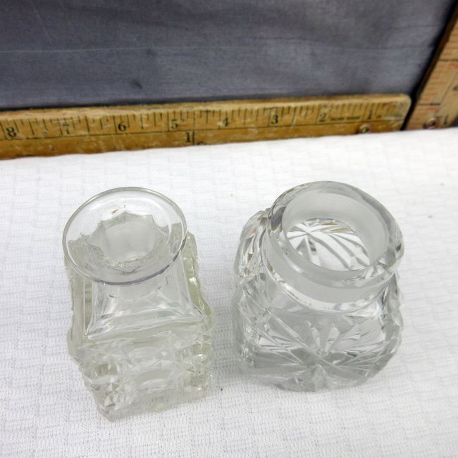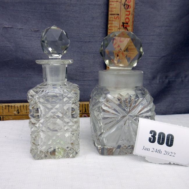 Current Bid: $7.00 [Refresh Price]YOU WILL NEED TO REFRESH THIS PAGE TO SEE UPDATED BID (Log in and this will update automatically) You must LOG IN or REGISTER to see this full page auction listing and bid. Auction is Over Winning Bid Amount: $7.00 **Lot Details: (300q) - 2 cut glass crystal bottles with original stoppers, one stopper chipped. Both approx 4" tall Log in to add this lot to your watch list or place a bid |