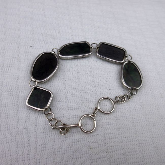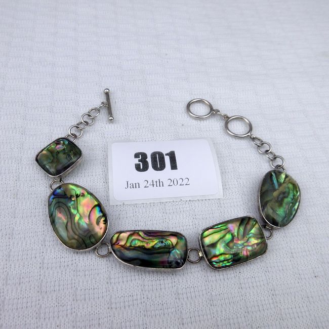 Current Bid: $20.20 [Refresh Price]YOU WILL NEED TO REFRESH THIS PAGE TO SEE UPDATED BID (Log in and this will update automatically) You must LOG IN or REGISTER to see this full page auction listing and bid. Auction is Over Winning Bid Amount: $20.20 **Lot Details: (301q) - Pretty Abalone bracelet, adjustable rings. Tests as sterling but cannot find mark Log in to add this lot to your watch list or place a bid |