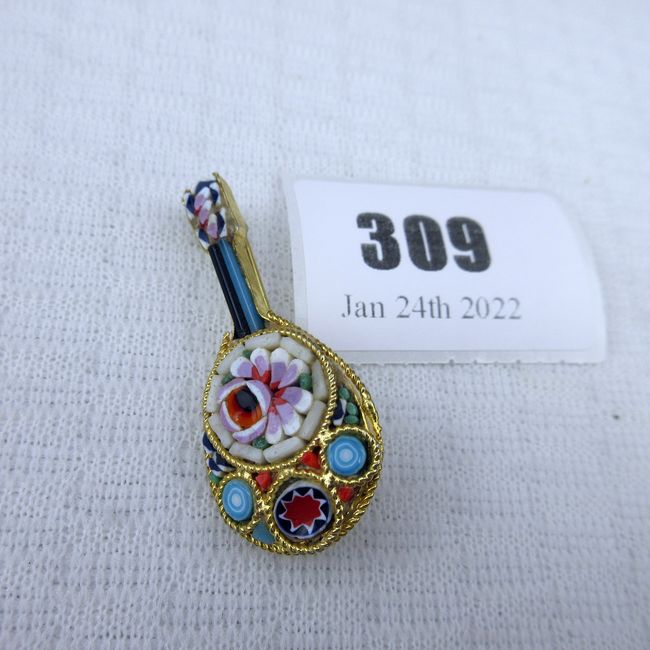 Current Bid: $24.90 [Refresh Price]YOU WILL NEED TO REFRESH THIS PAGE TO SEE UPDATED BID (Log in and this will update automatically) You must LOG IN or REGISTER to see this full page auction listing and bid. Auction is Over Winning Bid Amount: $24.90 **Lot Details: (309q) - Pretty gold plated mosaic Mandolin pin, 1 3/4" long Log in to add this lot to your watch list or place a bid |