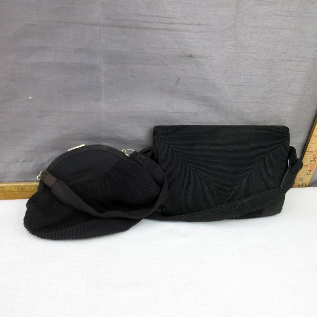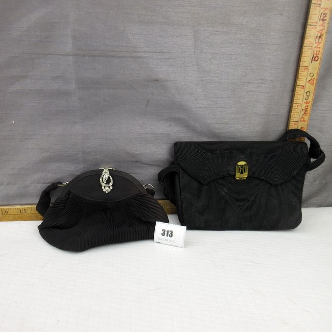 Current Bid: $[Refresh Price]YOU WILL NEED TO REFRESH THIS PAGE TO SEE UPDATED BID (Log in and this will update automatically) You must LOG IN or REGISTER to see this full page auction listing and bid. Auction is Over Winning Bid Amount: $This item did not sell **Lot Details: (313q) - English evening purse, pretty pleated body with diamonte clasp which lifts up to release clasp, closes in the reverse, missing a few rhinestones. Gold Seal Accessories sontache black evening purse, from Montreal with gold clasp Log in to add this lot to your watch list or place a bid |