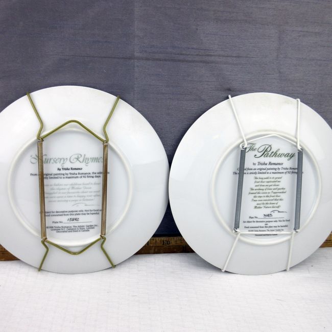 Current Bid: $5.00 [Refresh Price]YOU WILL NEED TO REFRESH THIS PAGE TO SEE UPDATED BID (Log in and this will update automatically) You must LOG IN or REGISTER to see this full page auction listing and bid. Auction is Over Winning Bid Amount: $5.00 **Lot Details: (328q) - Two Trisha Romance 8" wall plates with attached hanger. Plate #3414 The Pathway and #15842 Nursery Rhymes Log in to add this lot to your watch list or place a bid |