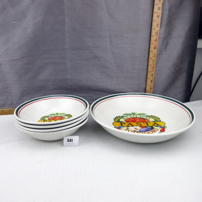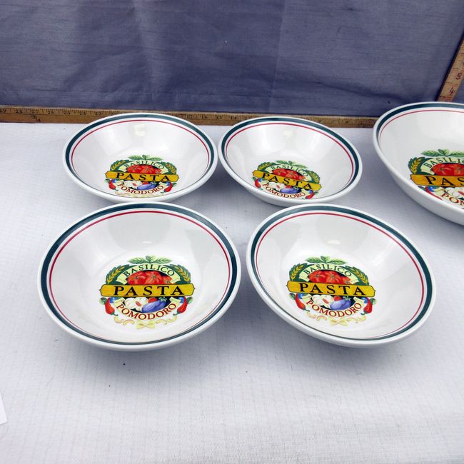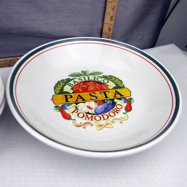 Current Bid: $9.00 [Refresh Price]YOU WILL NEED TO REFRESH THIS PAGE TO SEE UPDATED BID (Log in and this will update automatically) You must LOG IN or REGISTER to see this full page auction listing and bid. Auction is Over Winning Bid Amount: $9.00 **Lot Details: (341q) - A 5pc set of Siena Basilico Pomodora pasta dishes. Includes a large serving bowl and 4 individual pasta bowls. Dishwasher, oven and microwave safe. Excellent condition Log in to add this lot to your watch list or place a bid |