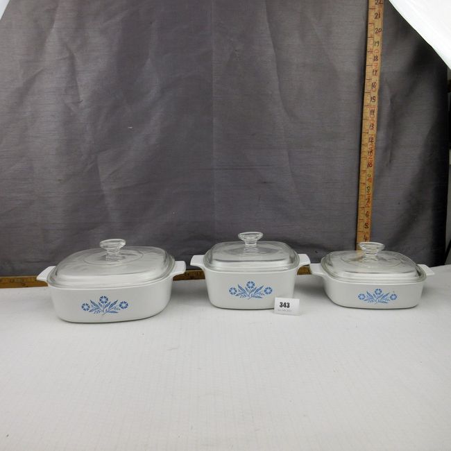 Current Bid: $18.50 [Refresh Price]YOU WILL NEED TO REFRESH THIS PAGE TO SEE UPDATED BID (Log in and this will update automatically) You must LOG IN or REGISTER to see this full page auction listing and bid. Auction is Over Winning Bid Amount: $18.50 **Lot Details: (343q) - A 6pc set of Corning Blue Cornflower casserole dishes. Includes a 1, 1.5 and 2 litre casserole dish with glass lids. Good condition Log in to add this lot to your watch list or place a bid |