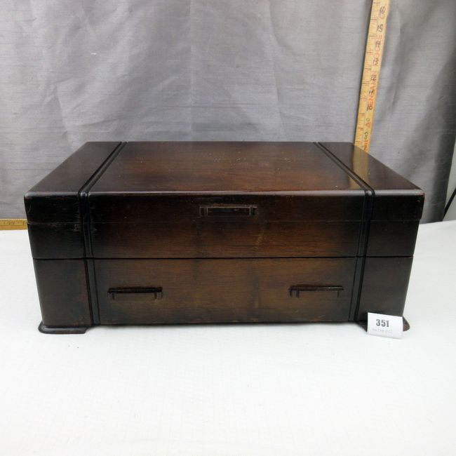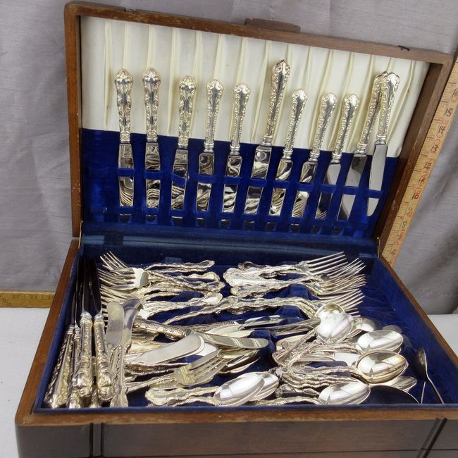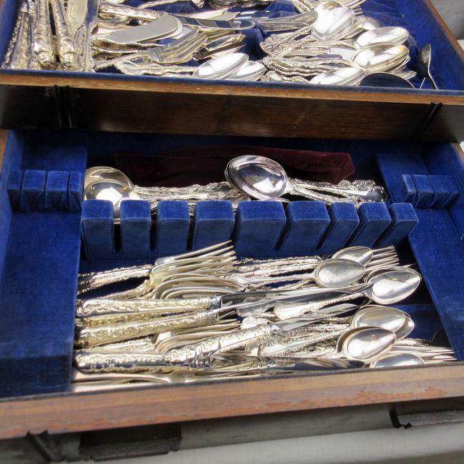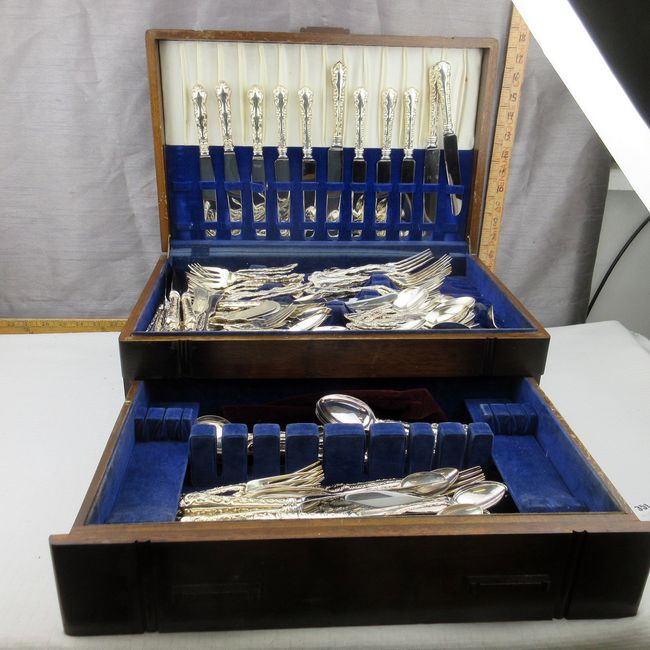 Current Bid: $75.10 [Refresh Price]YOU WILL NEED TO REFRESH THIS PAGE TO SEE UPDATED BID (Log in and this will update automatically) You must LOG IN or REGISTER to see this full page auction listing and bid. Auction is Over Winning Bid Amount: $75.10 **Lot Details: (351q) - Solid Walnut lift top with drawer cutlery chest with approx 100pcs of plated flatware, mixed. 18"L x 11.5"D x 7.5"H Log in to add this lot to your watch list or place a bid |