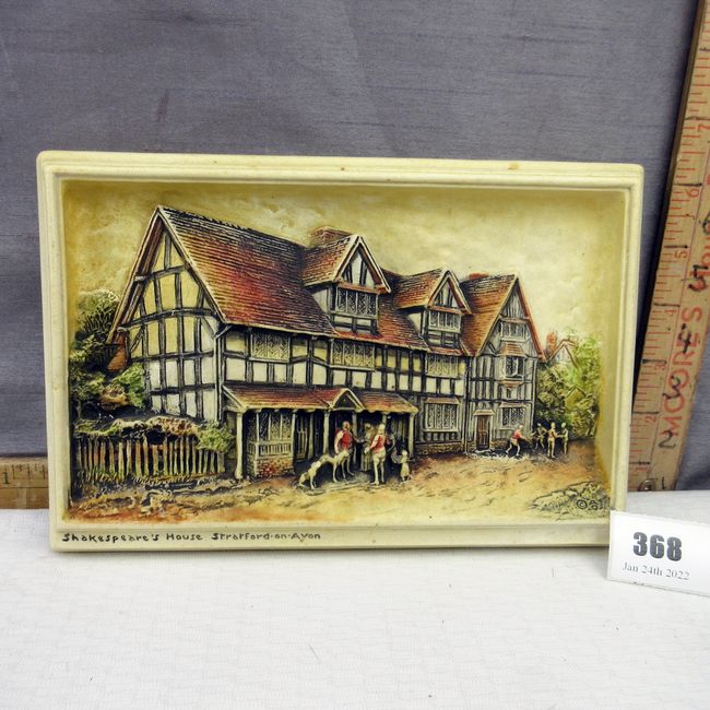 Current Bid: $[Refresh Price]YOU WILL NEED TO REFRESH THIS PAGE TO SEE UPDATED BID (Log in and this will update automatically) You must LOG IN or REGISTER to see this full page auction listing and bid. Auction is Over Winning Bid Amount: $This item did not sell **Lot Details: (368q) - 3D ceramic picture of Shakespeare's house 9" x 6", vintage Log in to add this lot to your watch list or place a bid |