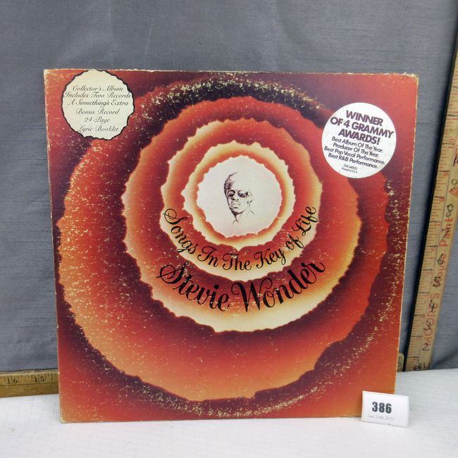 Current Bid: $9.87 [Refresh Price]YOU WILL NEED TO REFRESH THIS PAGE TO SEE UPDATED BID (Log in and this will update automatically) You must LOG IN or REGISTER to see this full page auction listing and bid. Auction is Over Winning Bid Amount: $9.87 **Lot Details: (386q) - Stevie Wonder 2 album set, 1976, Songs In The Key Of Life. Includes lyric booklet. Motown Records T-34042. Records and booklet in great shape, album cover in vintage condition Log in to add this lot to your watch list or place a bid |