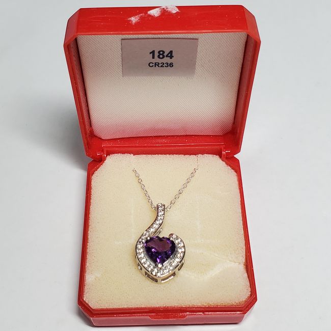 Current Bid: $12.00 [Refresh Price]YOU WILL NEED TO REFRESH THIS PAGE TO SEE UPDATED BID (Log in and this will update automatically) You must LOG IN or REGISTER to see this full page auction listing and bid. Auction is Over Winning Bid Amount: $12.00 **Lot Details: (JS131105) - Silver Amethyst(1.9ct) Necklace (~length 18inches) Log in to add this lot to your watch list or place a bid |