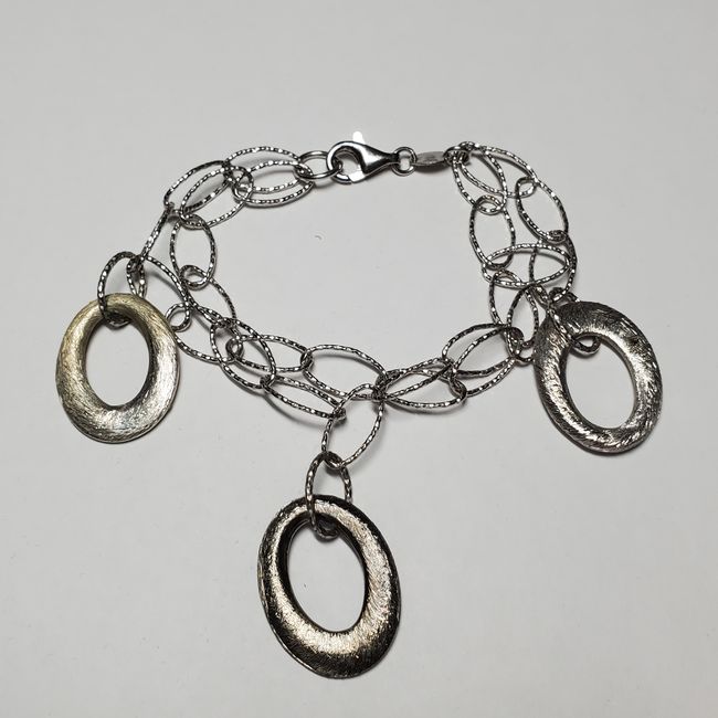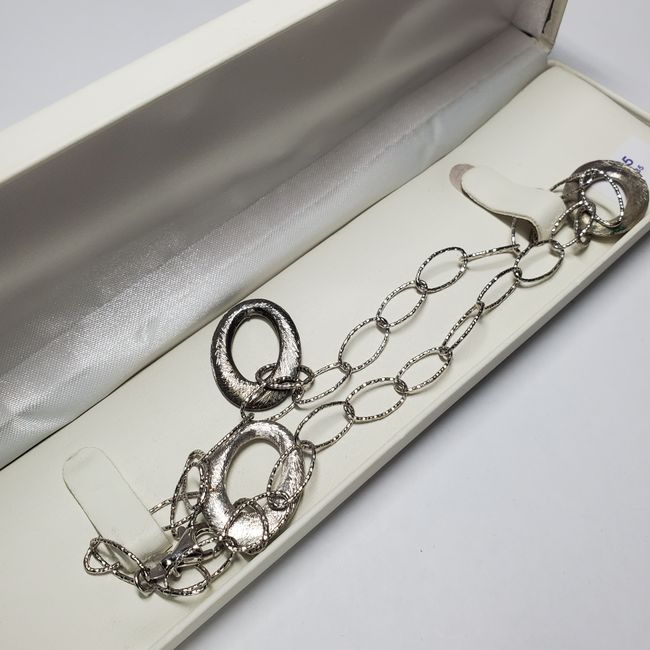 Current Bid: $9.00 [Refresh Price]YOU WILL NEED TO REFRESH THIS PAGE TO SEE UPDATED BID (Log in and this will update automatically) You must LOG IN or REGISTER to see this full page auction listing and bid. Auction is Over Winning Bid Amount: $9.00 **Lot Details: (JS131117) - Silver Italian Bracelet (~length 7inches) (~weight 13.68g) Log in to add this lot to your watch list or place a bid |
