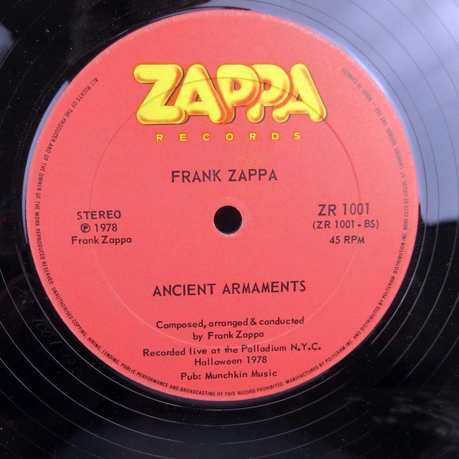 Current Bid: $9.00 [Refresh Price]YOU WILL NEED TO REFRESH THIS PAGE TO SEE UPDATED BID (Log in and this will update automatically) You must LOG IN or REGISTER to see this full page auction listing and bid. Auction is Over Winning Bid Amount: $9.00 **Lot Details: (407q) - Frank Zappa, Ancient Armamets 1978 vinyl, tested and playable Log in to add this lot to your watch list or place a bid |