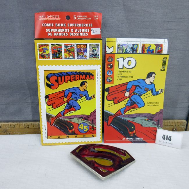 Current Bid: $12.05 [Refresh Price]YOU WILL NEED TO REFRESH THIS PAGE TO SEE UPDATED BID (Log in and this will update automatically) You must LOG IN or REGISTER to see this full page auction listing and bid. Auction is Over Winning Bid Amount: $12.05 **Lot Details: (414q) - Superman belt bucklem man of steel series. Canadian Post Superheroes stamp collection. Canadian Post Comic Book Superheroes stamp collection Log in to add this lot to your watch list or place a bid |