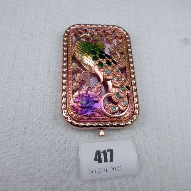 Current Bid: $11.00 [Refresh Price]YOU WILL NEED TO REFRESH THIS PAGE TO SEE UPDATED BID (Log in and this will update automatically) You must LOG IN or REGISTER to see this full page auction listing and bid. Auction is Over Winning Bid Amount: $11.00 **Lot Details: (417q) - Unique rose gold Peacock hand held mirror, like new Log in to add this lot to your watch list or place a bid |