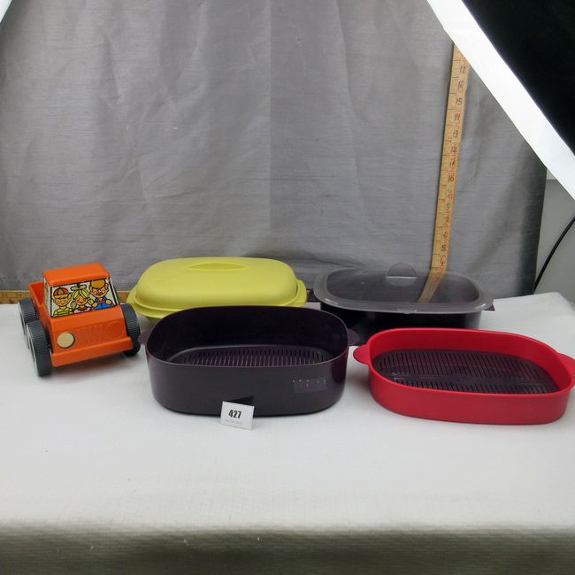 Current Bid: $5.00 [Refresh Price]YOU WILL NEED TO REFRESH THIS PAGE TO SEE UPDATED BID (Log in and this will update automatically) You must LOG IN or REGISTER to see this full page auction listing and bid. Auction is Over Winning Bid Amount: $5.00 **Lot Details: (427q) - Tupperware lot including Tupperware vintage toy truck and vintage steamers Log in to add this lot to your watch list or place a bid |