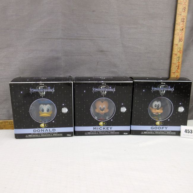 Current Bid: $9.22 [Refresh Price]YOU WILL NEED TO REFRESH THIS PAGE TO SEE UPDATED BID (Log in and this will update automatically) You must LOG IN or REGISTER to see this full page auction listing and bid. Auction is Over Winning Bid Amount: $9.22 **Lot Details: (453q) - Set of 3 Disney Kingdom Hearts vinyl figures, Donald, Goofy and Mickey by Funko Log in to add this lot to your watch list or place a bid |