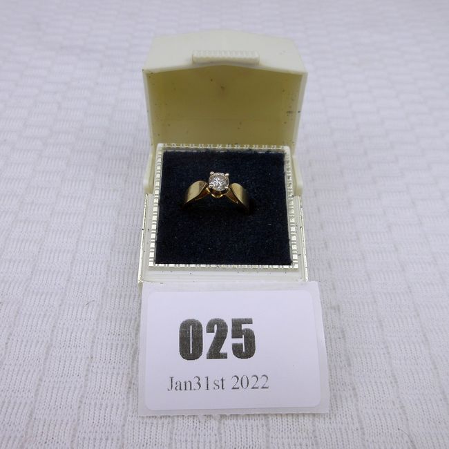 Current Bid: $167.10 [Refresh Price]YOU WILL NEED TO REFRESH THIS PAGE TO SEE UPDATED BID (Log in and this will update automatically) You must LOG IN or REGISTER to see this full page auction listing and bid. Auction is Over Winning Bid Amount: $167.10 **Lot Details: (25r) - Vintage 14K Gold Diamond ring. Appears to be about 1/4K Diamond, with vintage box Log in to add this lot to your watch list or place a bid |
