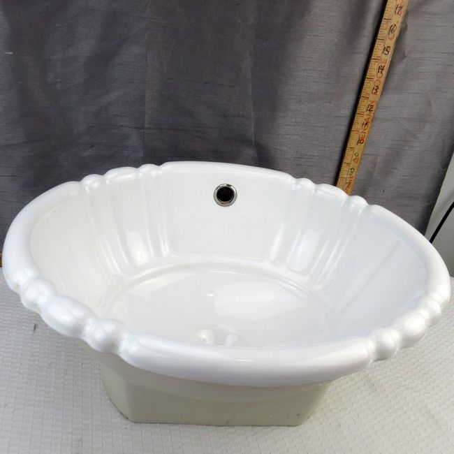 Current Bid: $7.00 [Refresh Price]YOU WILL NEED TO REFRESH THIS PAGE TO SEE UPDATED BID (Log in and this will update automatically) You must LOG IN or REGISTER to see this full page auction listing and bid. Auction is Over Winning Bid Amount: $7.00 **Lot Details: (36h) - Almost new Shell Drop in Powder Room Sink w overflow ring installed, no cracks or chips or scratches, 17 3/4" wide x 14 1/2" Log in to add this lot to your watch list or place a bid |