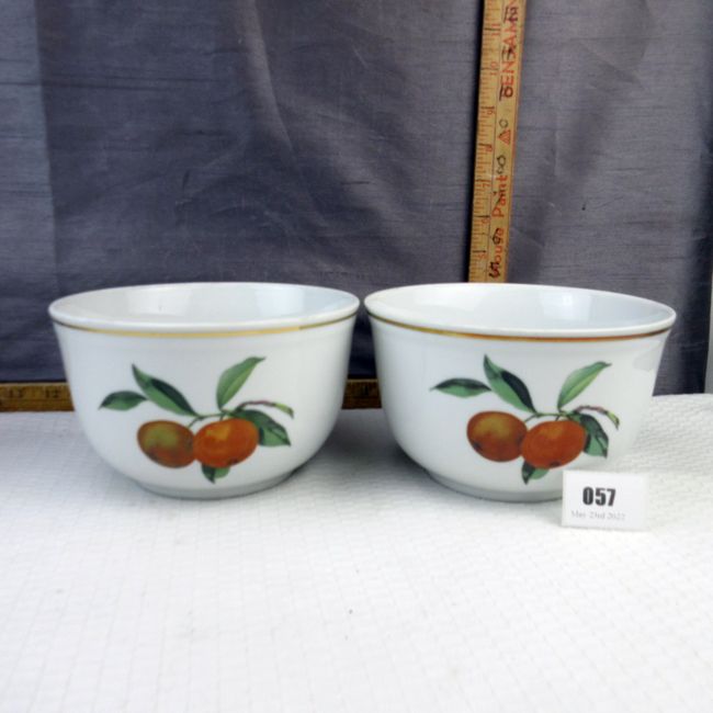 Current Bid: $21.00 [Refresh Price]YOU WILL NEED TO REFRESH THIS PAGE TO SEE UPDATED BID (Log in and this will update automatically) You must LOG IN or REGISTER to see this full page auction listing and bid. Auction is Over Winning Bid Amount: $21.00 **Lot Details: (57h) - Two Deep Evesham Royal Worcester England Bowls, oven to table in almost new condition Log in to add this lot to your watch list or place a bid |