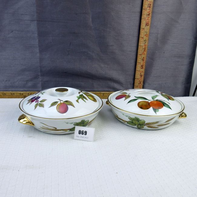 Current Bid: $32.00 [Refresh Price]YOU WILL NEED TO REFRESH THIS PAGE TO SEE UPDATED BID (Log in and this will update automatically) You must LOG IN or REGISTER to see this full page auction listing and bid. Auction is Over Winning Bid Amount: $32.00 **Lot Details: (69h) - 2 round Lidded Vegetable/Baking Dishes Royal Worcester England, oven to table Log in to add this lot to your watch list or place a bid |