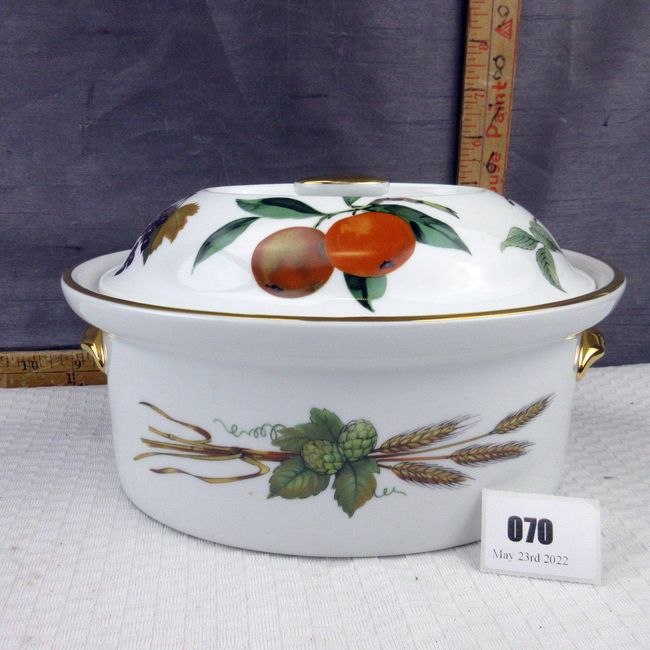 Current Bid: $22.50 [Refresh Price]YOU WILL NEED TO REFRESH THIS PAGE TO SEE UPDATED BID (Log in and this will update automatically) You must LOG IN or REGISTER to see this full page auction listing and bid. Auction is Over Winning Bid Amount: $22.50 **Lot Details: (70h) - Large Oval Evesham Royal Worcester England Casserole Baking Lidded Dish, oven to table and it looks in new condition Log in to add this lot to your watch list or place a bid |