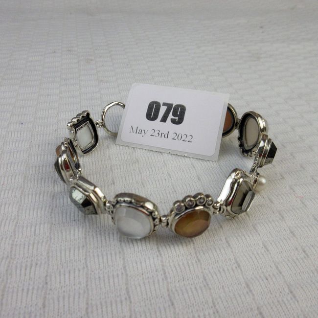 Current Bid: $36.00 [Refresh Price]YOU WILL NEED TO REFRESH THIS PAGE TO SEE UPDATED BID (Log in and this will update automatically) You must LOG IN or REGISTER to see this full page auction listing and bid. Auction is Over Winning Bid Amount: $36.00 **Lot Details: (79h) - Over 31 grams Silipada Sterling Silver multi stone Bracelet w toggle closure Log in to add this lot to your watch list or place a bid |