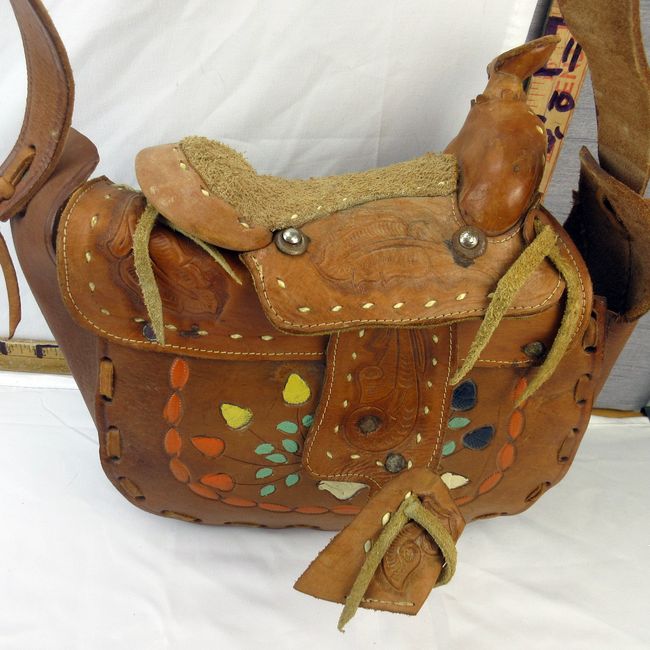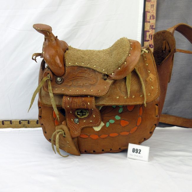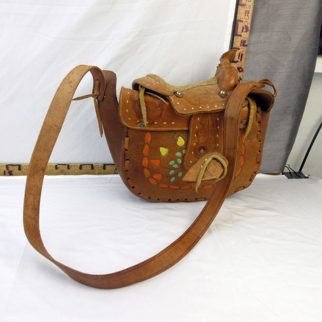 Current Bid: $69.00 [Refresh Price]YOU WILL NEED TO REFRESH THIS PAGE TO SEE UPDATED BID (Log in and this will update automatically) You must LOG IN or REGISTER to see this full page auction listing and bid. Auction is Over Winning Bid Amount: $69.00 **Lot Details: (92h) - Rare 1960s Cowgirl tooled leather purse with the top in the form of a saddle; underside of the saddle is shearling. A very collectible item. Log in to add this lot to your watch list or place a bid |