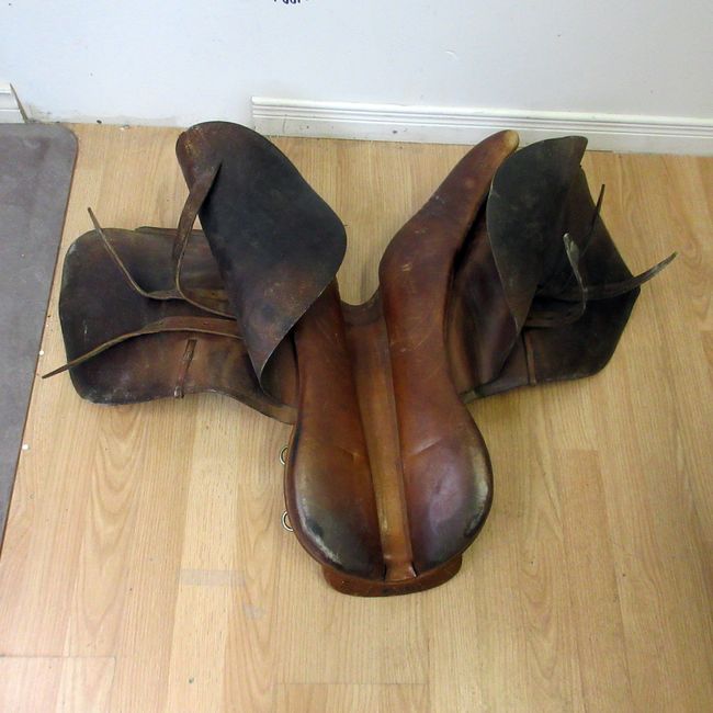 Current Bid: $27.00 [Refresh Price]YOU WILL NEED TO REFRESH THIS PAGE TO SEE UPDATED BID (Log in and this will update automatically) You must LOG IN or REGISTER to see this full page auction listing and bid. Auction is Over Winning Bid Amount: $27.00 **Lot Details: (95h) - Old brown leather English saddle, a nice decoration for a cabin, cottage, ranch or Christmas time. Log in to add this lot to your watch list or place a bid |