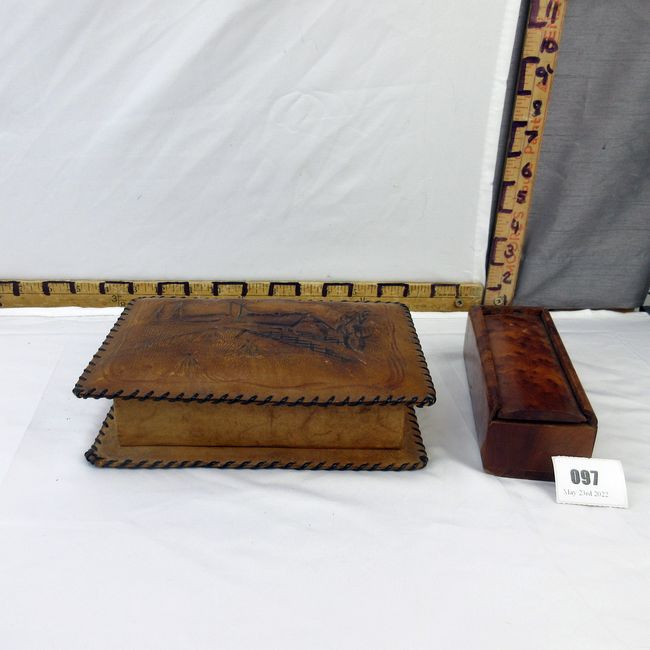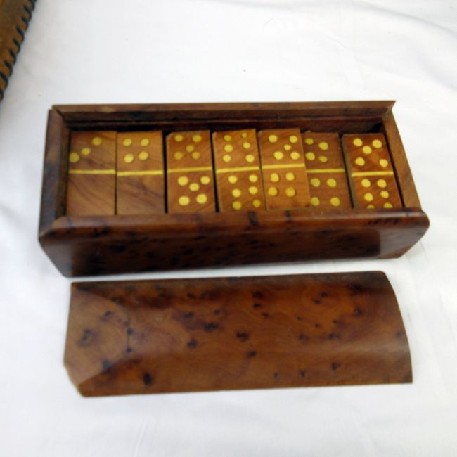 Current Bid: $14.50 [Refresh Price]YOU WILL NEED TO REFRESH THIS PAGE TO SEE UPDATED BID (Log in and this will update automatically) You must LOG IN or REGISTER to see this full page auction listing and bid. Auction is Over Winning Bid Amount: $14.50 **Lot Details: (97h) - Lot including vintage embossed leather card box and Folk Art bird’s eye maple dominos set. Log in to add this lot to your watch list or place a bid |