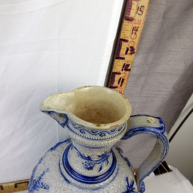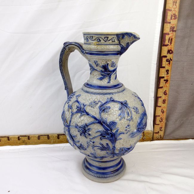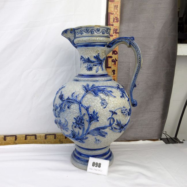 Current Bid: $19.33 [Refresh Price]YOU WILL NEED TO REFRESH THIS PAGE TO SEE UPDATED BID (Log in and this will update automatically) You must LOG IN or REGISTER to see this full page auction listing and bid. Auction is Over Winning Bid Amount: $19.33 **Lot Details: (98h) - Antique 19th C Westerwald stoneware Beer Ewer with blue glazed scrolling foliate design and seated stag at front; 12” H. One chip to the top rim. Log in to add this lot to your watch list or place a bid |
