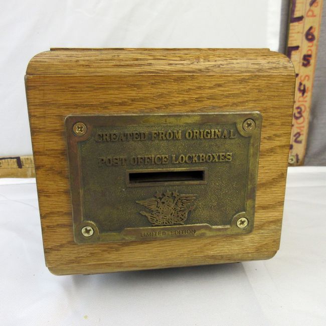 Current Bid: $62.05 [Refresh Price]YOU WILL NEED TO REFRESH THIS PAGE TO SEE UPDATED BID (Log in and this will update automatically) You must LOG IN or REGISTER to see this full page auction listing and bid. Auction is Over Winning Bid Amount: $62.05 **Lot Details: (99h) - Vintage Limited Edition oak Post Office Lockbox coin bank with combination on the underside. Log in to add this lot to your watch list or place a bid |