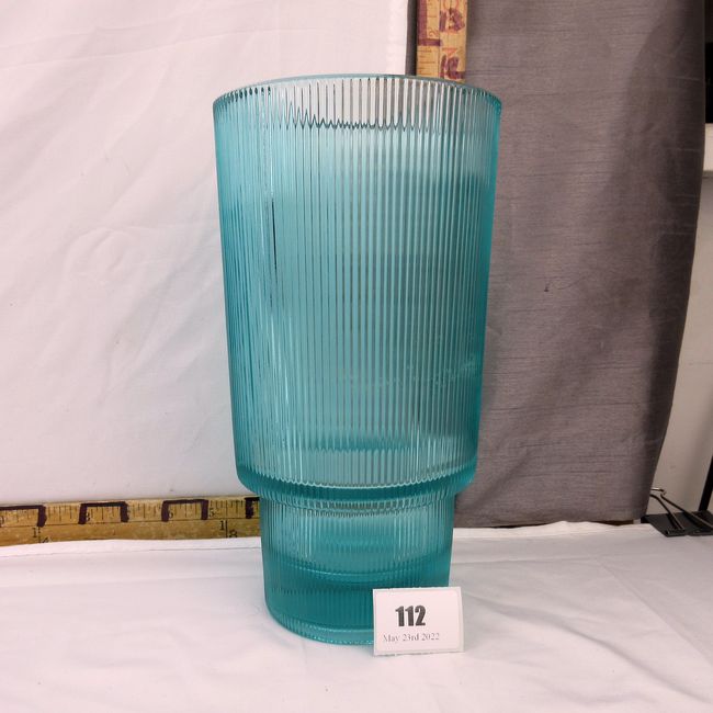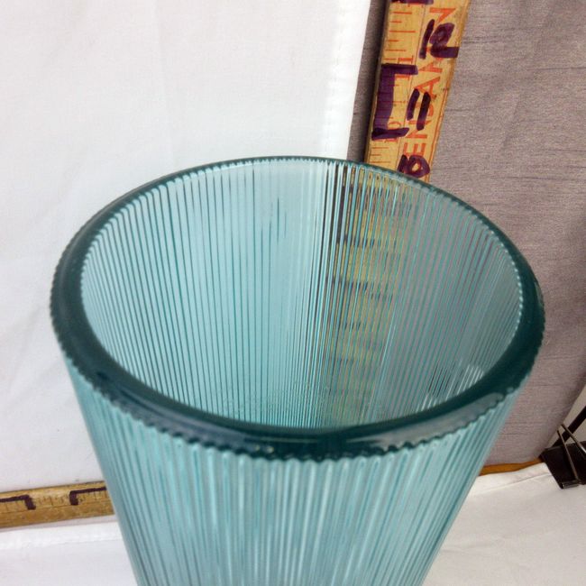 Current Bid: $17.00 [Refresh Price]YOU WILL NEED TO REFRESH THIS PAGE TO SEE UPDATED BID (Log in and this will update automatically) You must LOG IN or REGISTER to see this full page auction listing and bid. Auction is Over Winning Bid Amount: $17.00 **Lot Details: (112h) - Heavy mid-century Modernist light aqua glass Vase with ribbed texture, finished bottom. No marks, 10” H. Log in to add this lot to your watch list or place a bid |