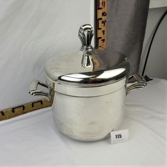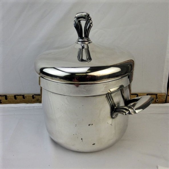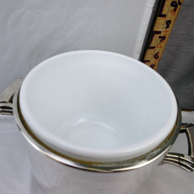 Current Bid: $11.00 [Refresh Price]YOU WILL NEED TO REFRESH THIS PAGE TO SEE UPDATED BID (Log in and this will update automatically) You must LOG IN or REGISTER to see this full page auction listing and bid. Auction is Over Winning Bid Amount: $11.00 **Lot Details: (115h) - Classy vintage Art Deco Towle Silverplate Ice Bucket with milk glass insert. Log in to add this lot to your watch list or place a bid |