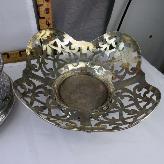 Current Bid: $5.00 [Refresh Price]YOU WILL NEED TO REFRESH THIS PAGE TO SEE UPDATED BID (Log in and this will update automatically) You must LOG IN or REGISTER to see this full page auction listing and bid. Auction is Over Winning Bid Amount: $5.00 **Lot Details: (119h) - Lot vintage Silverplated items including 2 Toronto Silverplate Co. pierced Jardinières (approx.. 7” W) and a pierced Pairpoint decorative bowl, 9 ½” W Log in to add this lot to your watch list or place a bid |